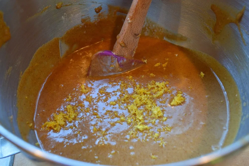 The whole thing comes together quite easily. The only real changes I made to the original recipe were to swap out the grated orange peel for lemon zest and to omit using candied orange peel. I just never care for orange flavor in baked goods, but if you lean toward the unrhyming fruit, by all means use it (sorry, but I am a lyricist by trade). Also, I just used regular old honey, though Maida suggests you use a really special brand because of how it affects the flavor. No one in my house seemed to mind.