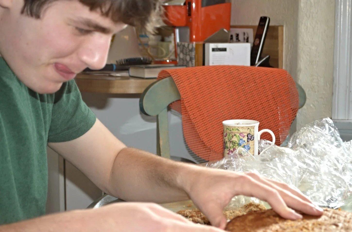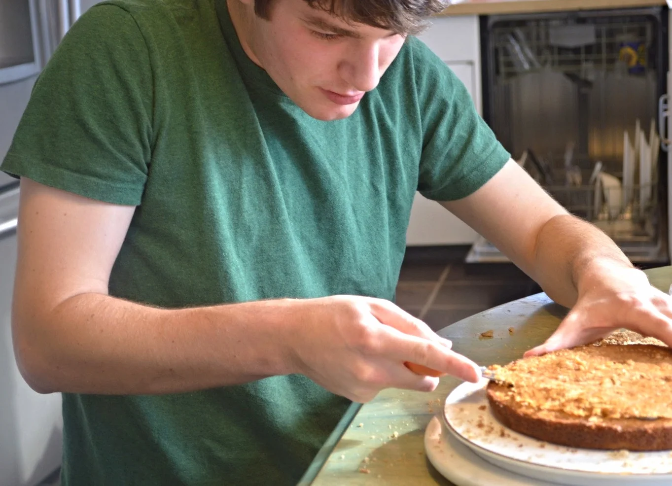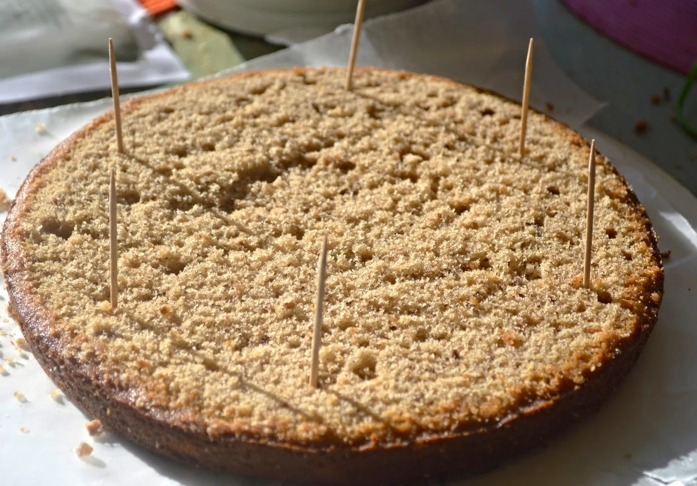 Meanwhile, you trim the cake layers so that they are even and flat. It takes a lot of concentration!