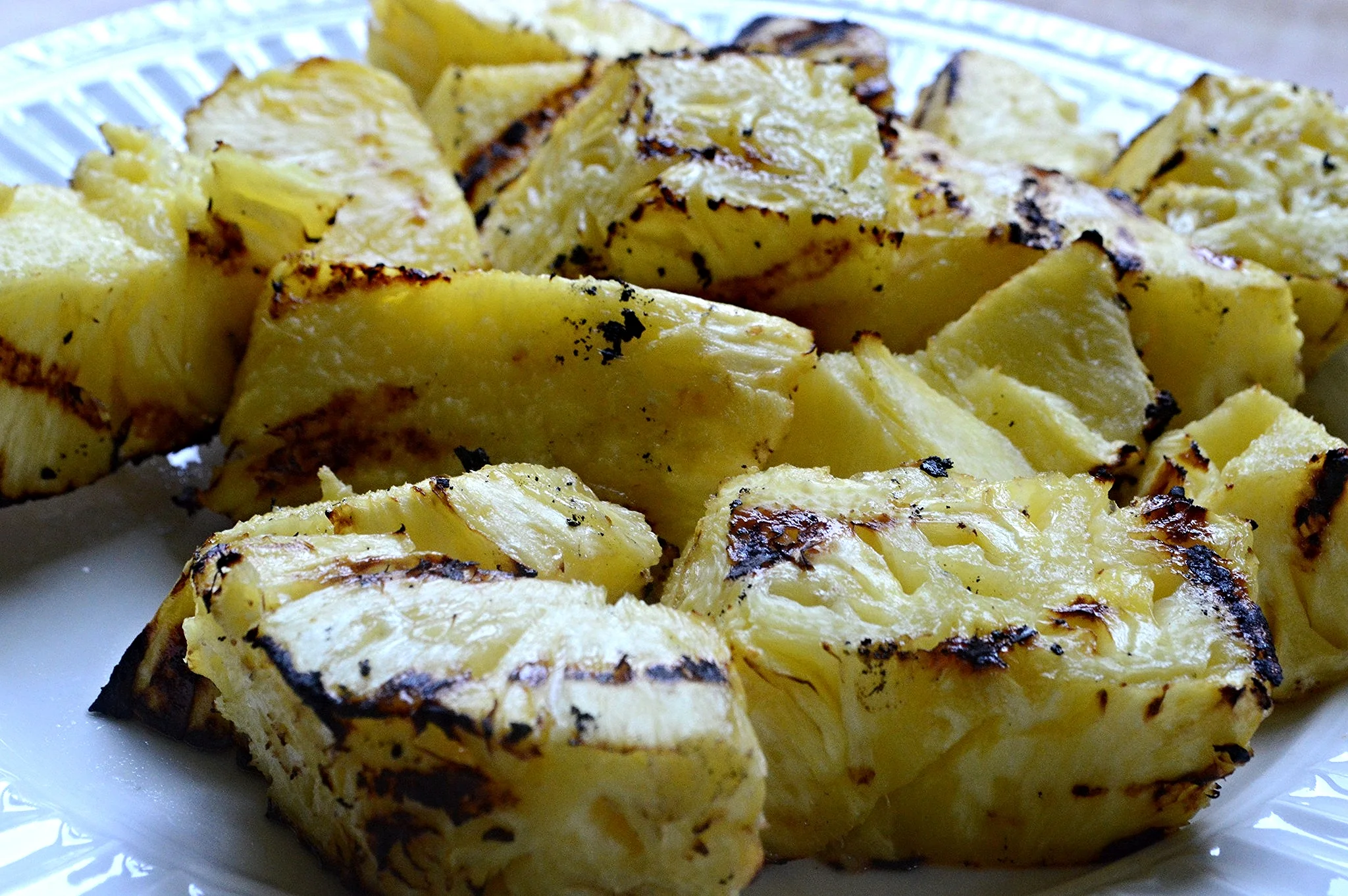 - 1 ripe pineapple, peeled and sliced into 1/4 thick rounds (if you make them too thin, they'll burn on the grill)