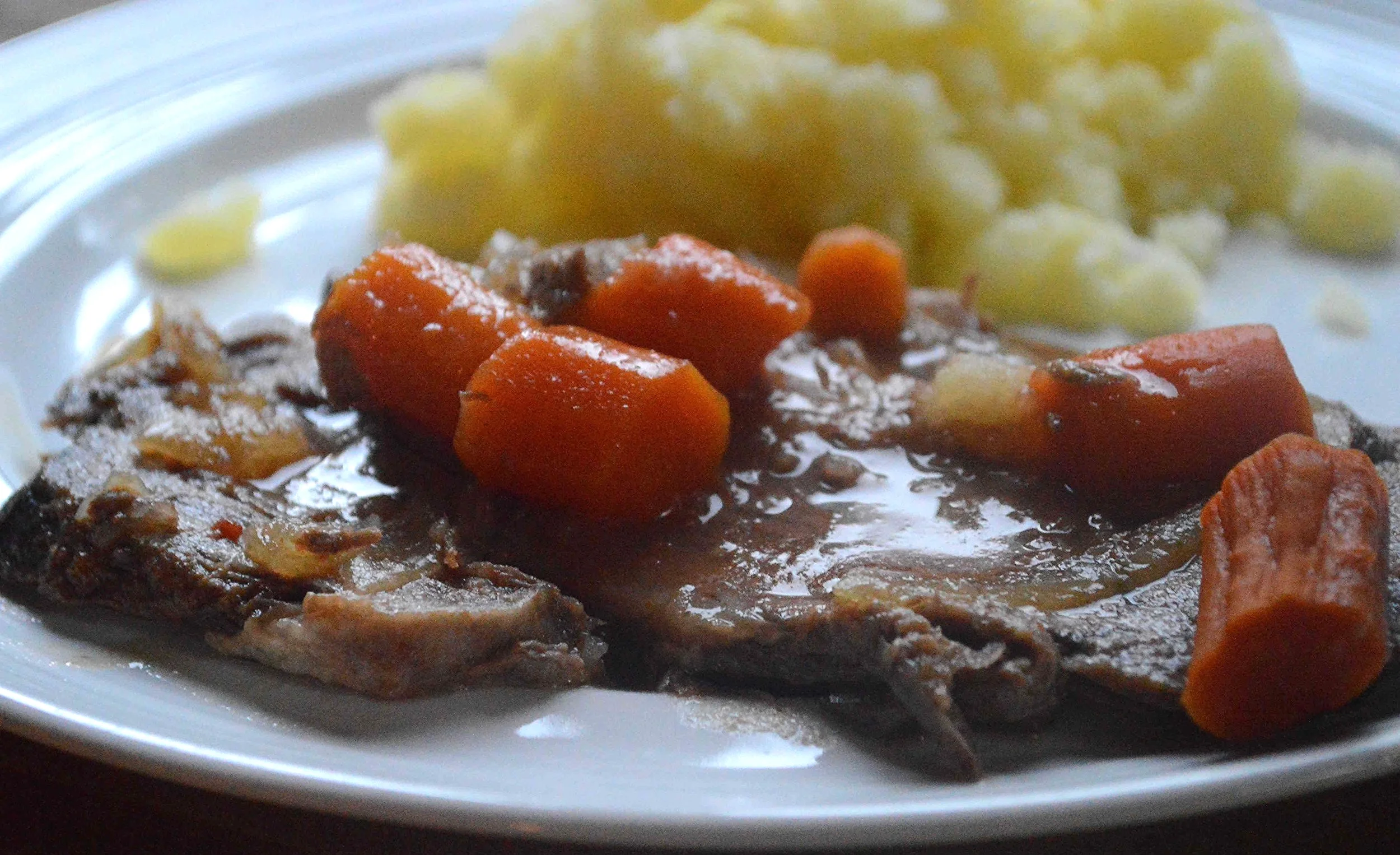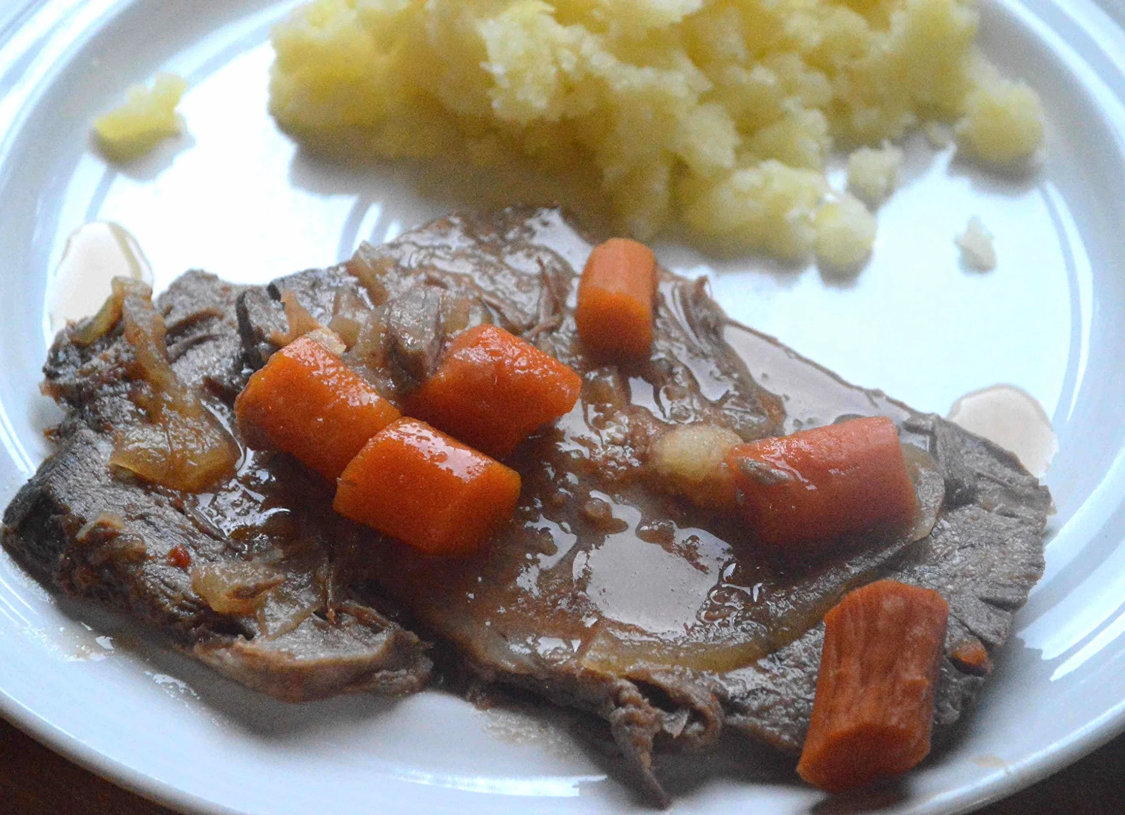 The only necessity is that you serve this with mashed potatoes, noodles, rice or even a good piece of bread to sop up all the delicious juices. The meat is savory, slightly sweet and fall-off-the-fork tender and the carrots add a welcome touch of color and sweetness.