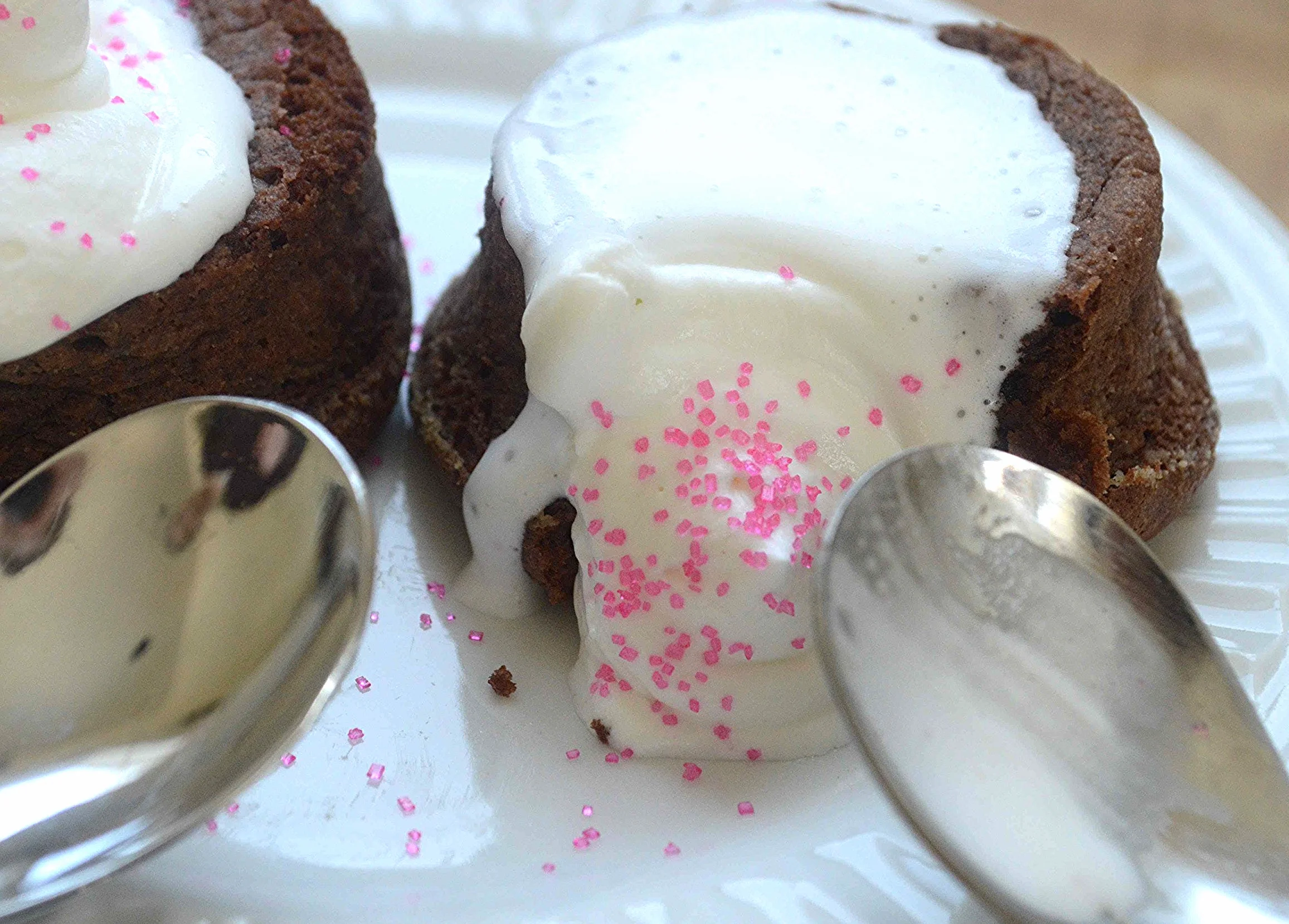 6. Serve the cakes in the ramekins, or use a knife to loosen around the edges and invert onto small plates. Top each with a dollop of whipped cream and sprinkles (if using). Serve immediately.