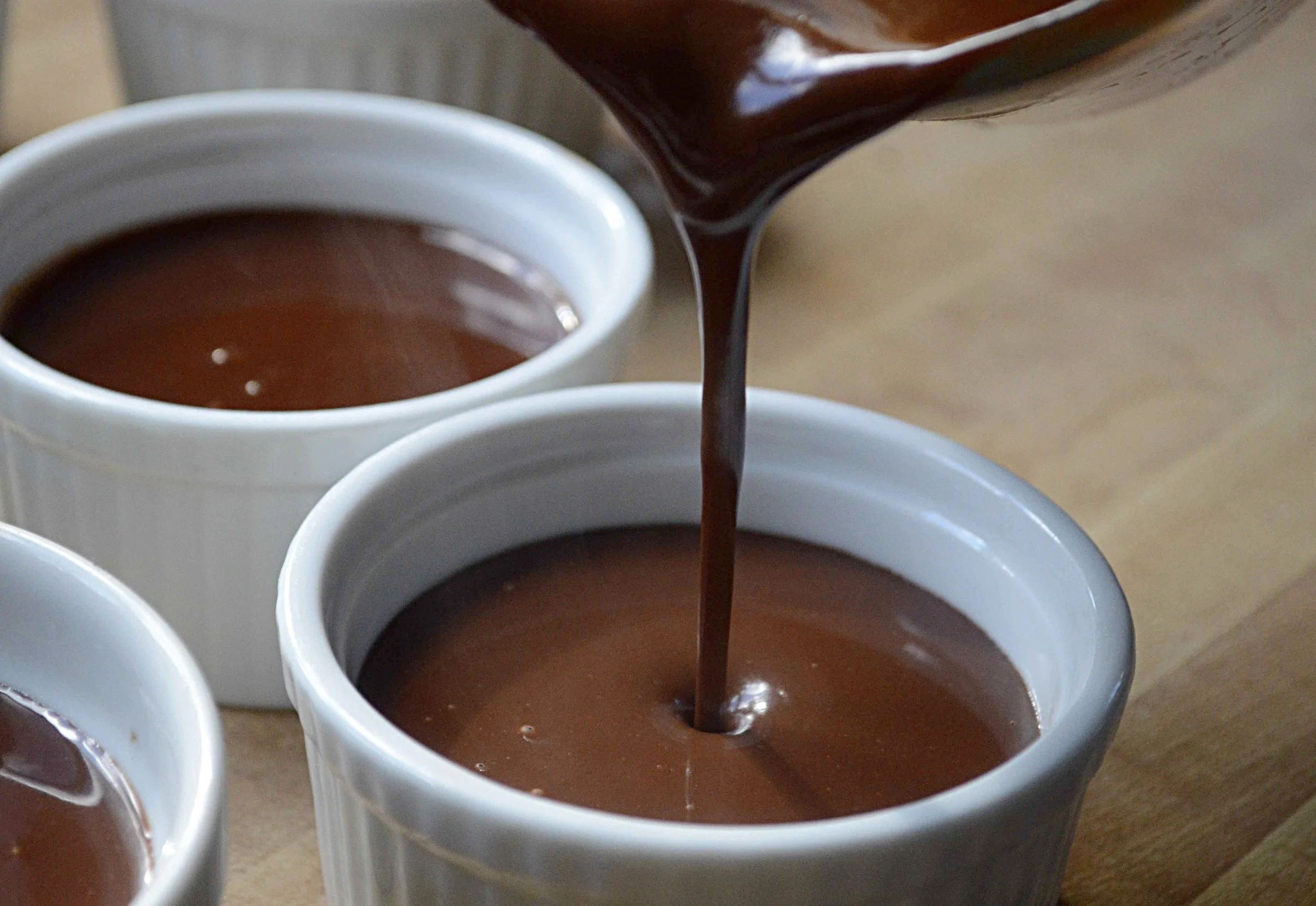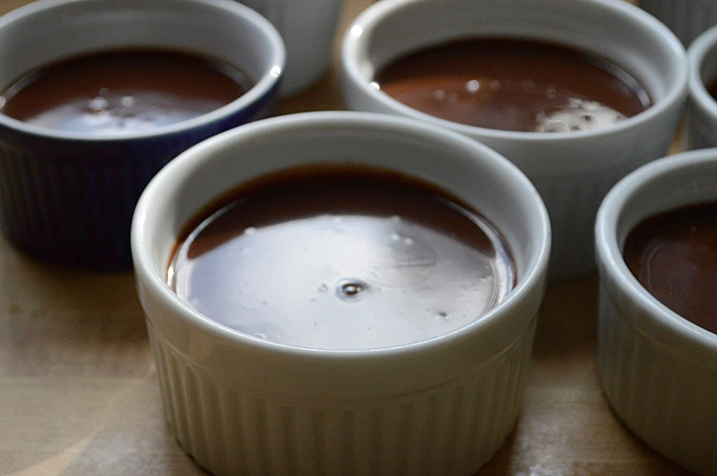 3. Pour the mixture evenly into ramekins, wine glasses, or souffle dishes and chill uncovered for 30 minutes. Then cover tightly with plastic wrap (if you don't a skin will form) and chill again for at least 3-4 hours and up to 3 days.