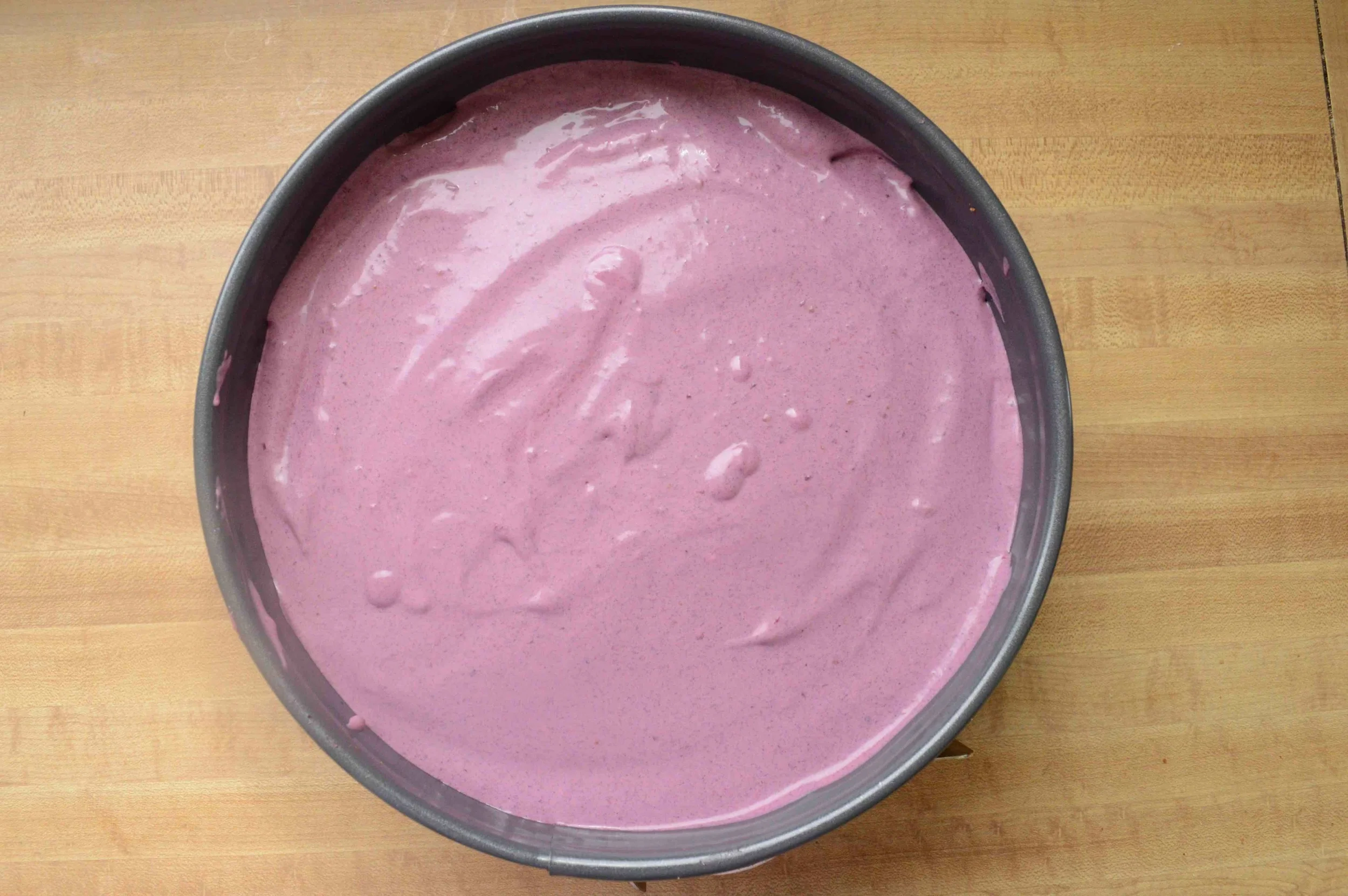 The filling is entirely made in the food processor with the exception of the gelatin mixture which gets heated on the stovetop for about a minute and then blended with the blackberry/lemon/cream cheese mixture and eventually poured into the cooled crust. Look at that amazing purpleness!!