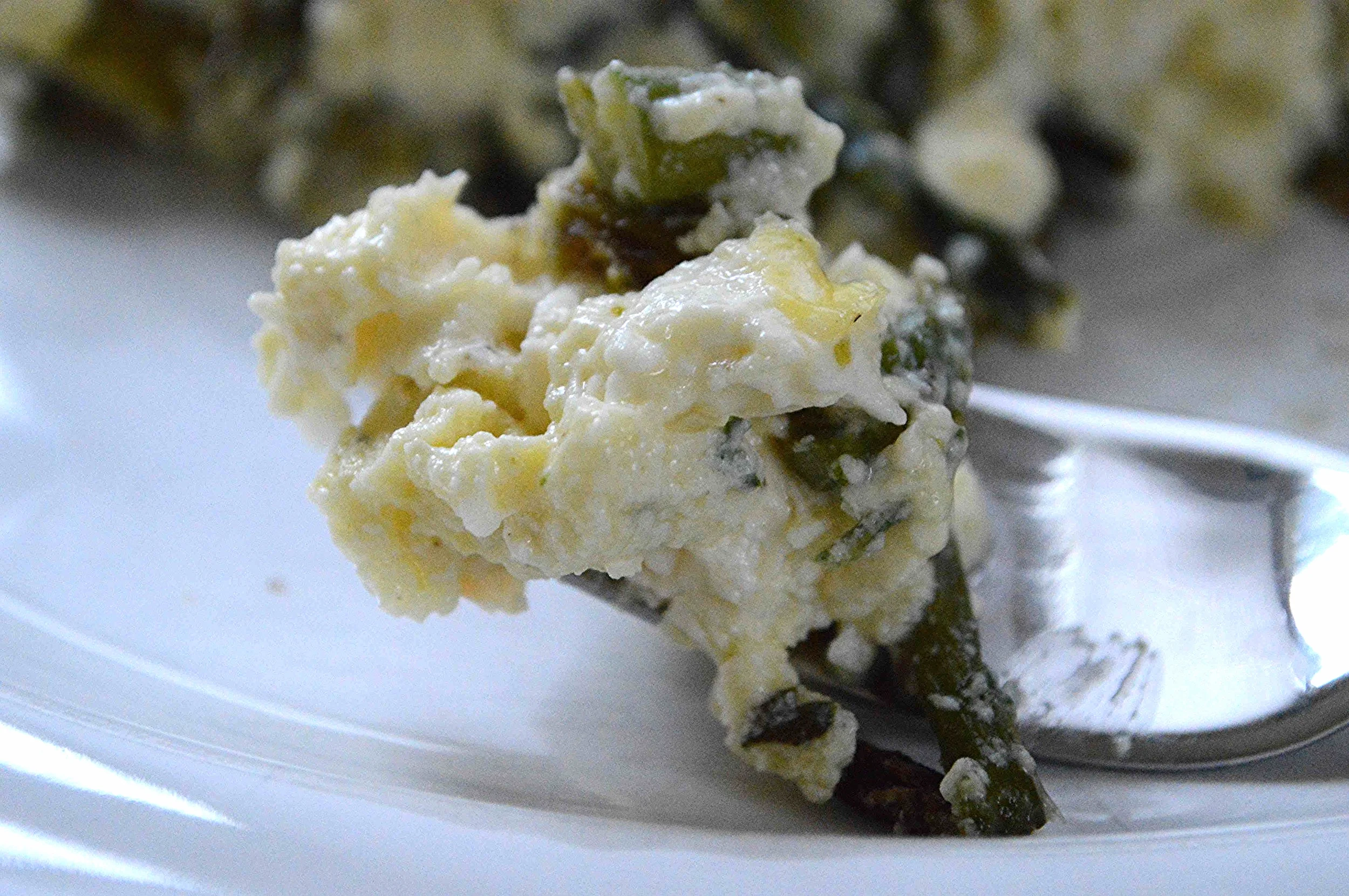 Note: Recipe adapted from Tori Avey. I omitted the nutmeg because none of us like nutmeg and increased the amount of feta. I also used more asparagus.
