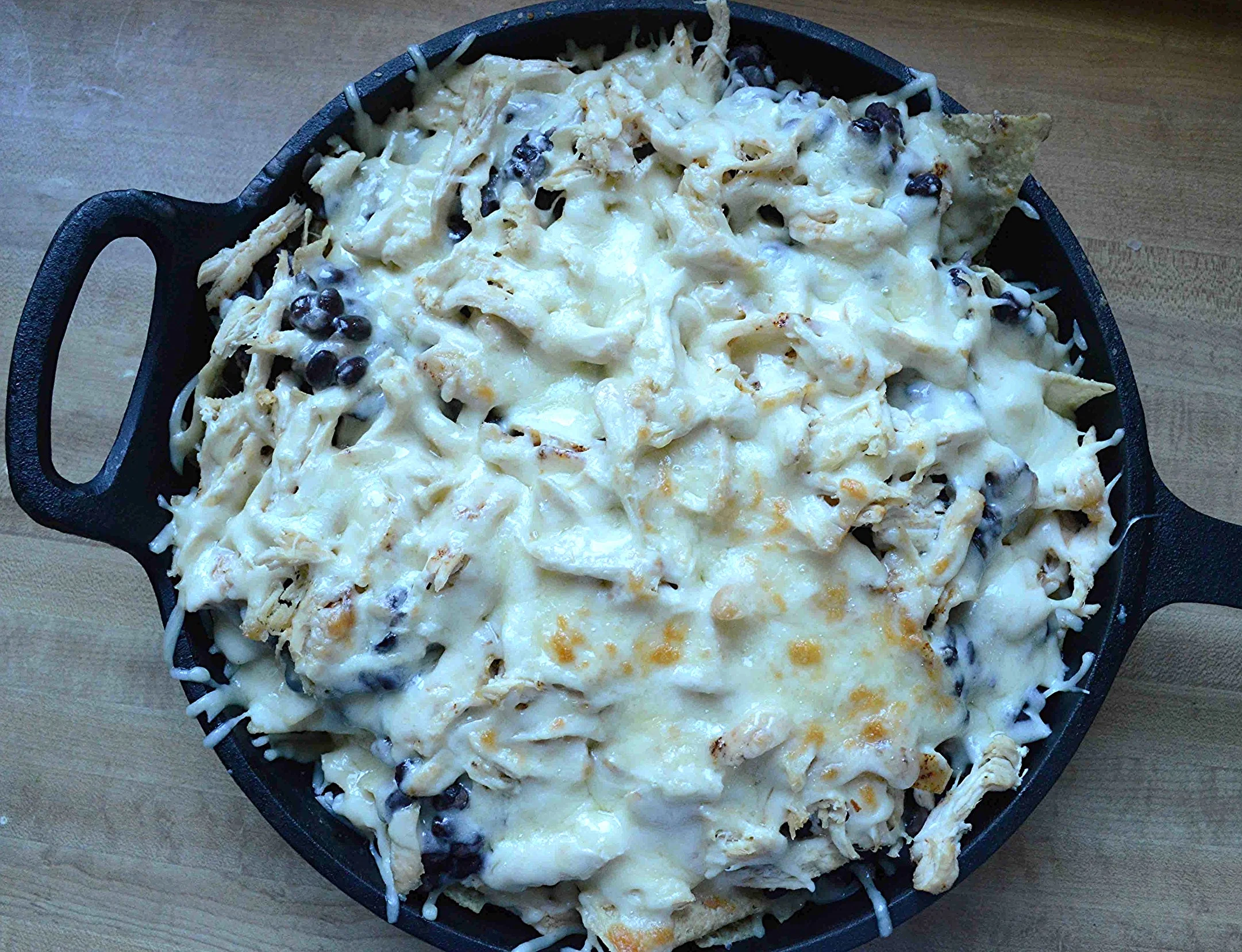 Skillet Chicken Nachos with Oaxacan Black Beans