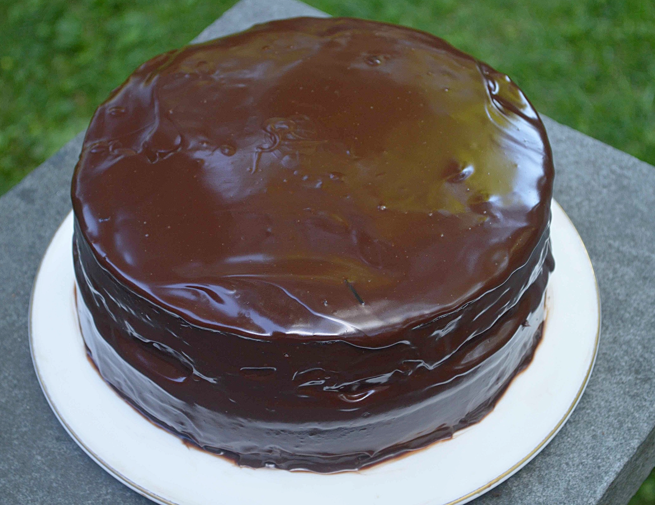 Then you heat the rest until it achieves a liquid state and pour it over the top of the entire cake, letting it drip down the sides, till the cake is literally bathed in chocolate!!
