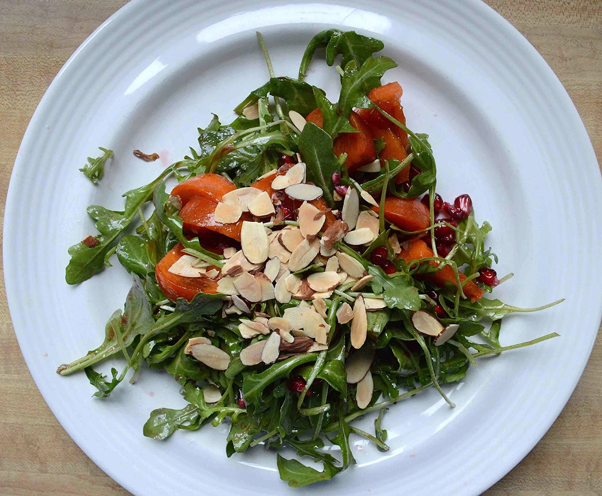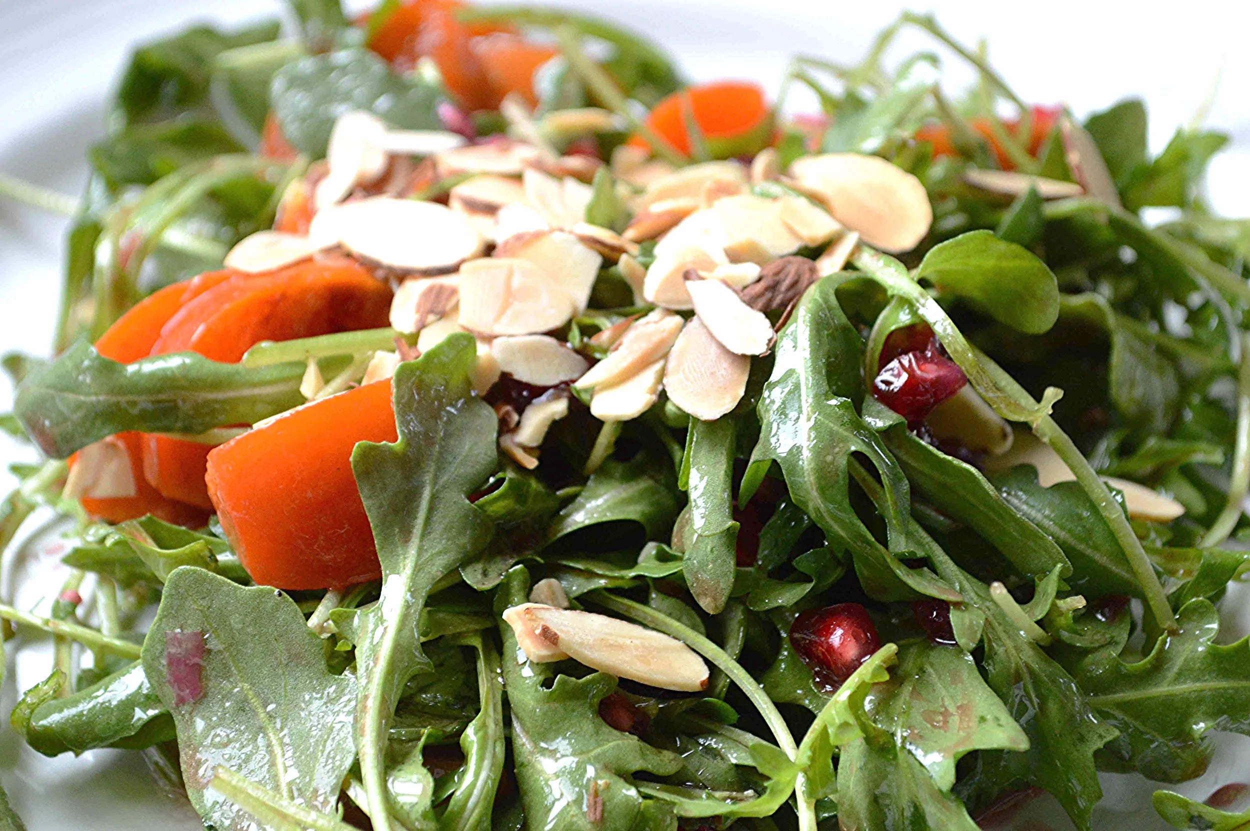 Winter Salad with Pomegranate, Persimmon, Toasted Almonds and Raspberry Vinaigrette