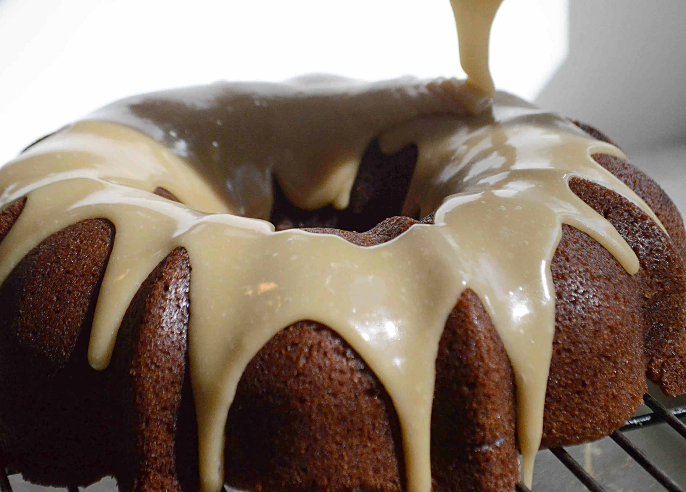 1. To make the cake: preheat oven to 350ºF and spray a 12-cup Bundt pan with the butter/flour spray or butter and flour the pan. Set aside.