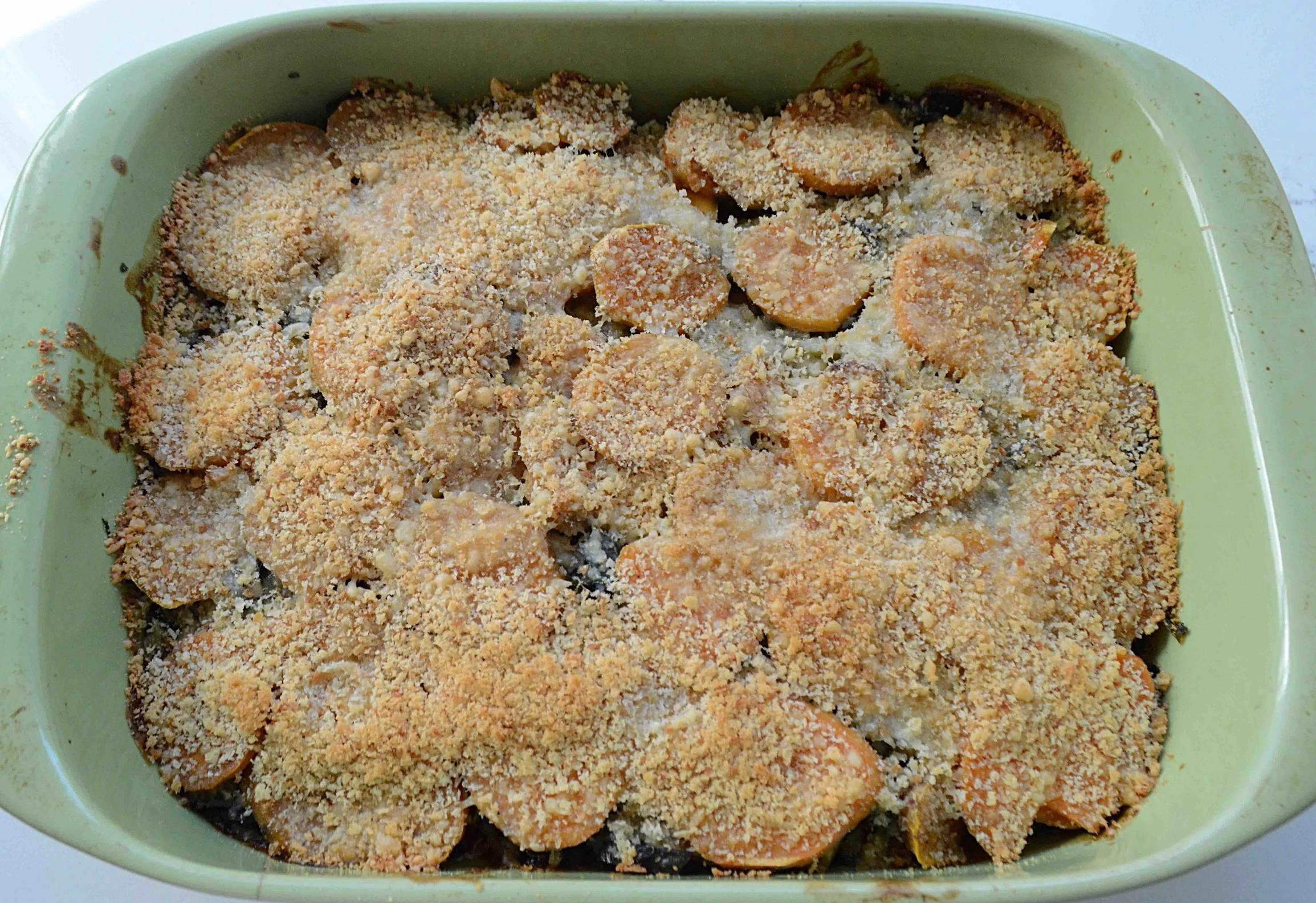 Secrets of the Southern Table’s Savory Sweet Potato and Greens Gratin-Famous Fridays