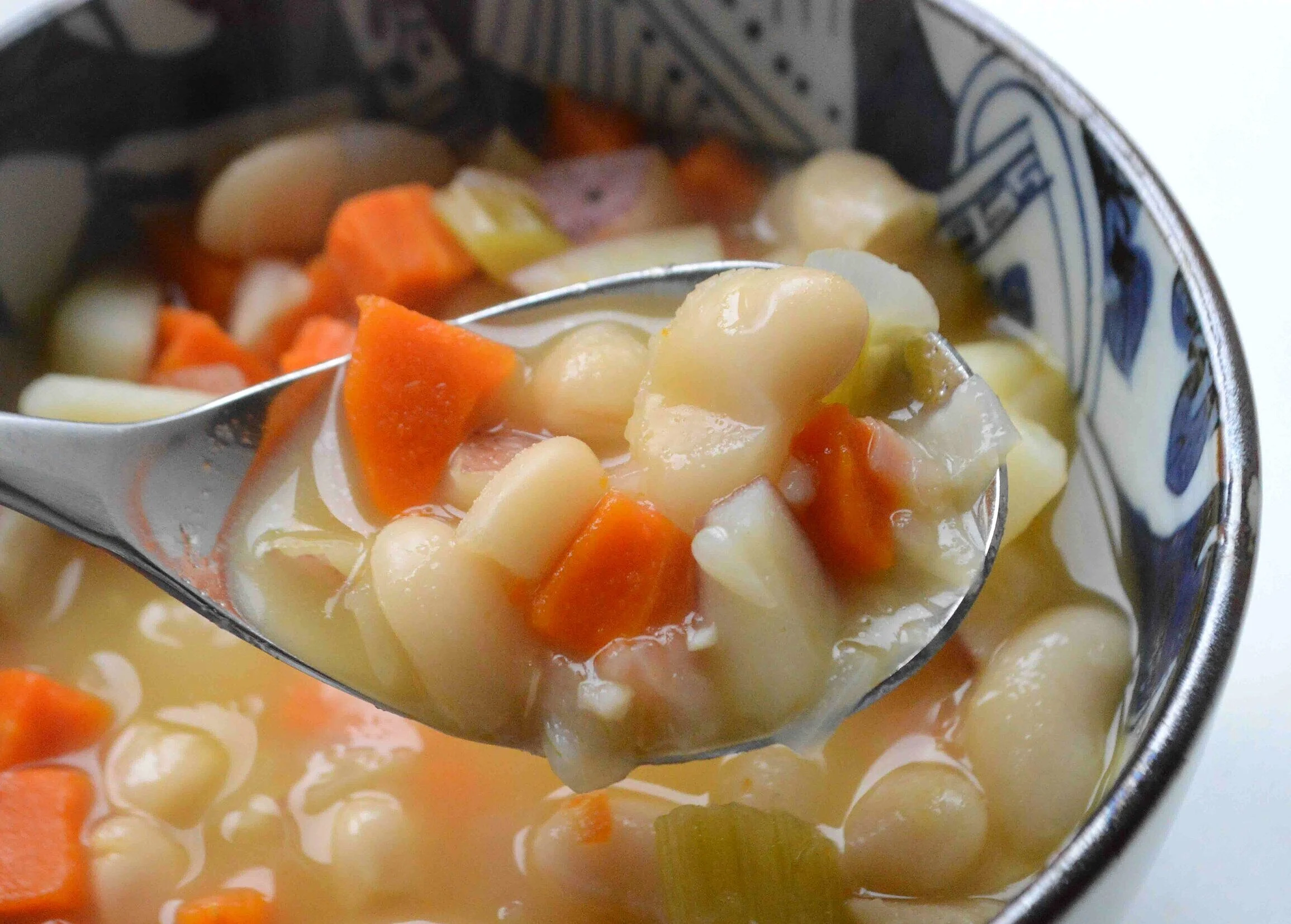 I don’t have a real bean soup on the site. Sure, I have soups with some beans in them but that’s because I opened up a can—not that I’m knocking the already prepped canned beans but I have yet to be brave enough and make an honest-to-goodness, soak-in-the-pot-from-scratch bean soup. I’ve always been kinda intimidated by cooking with dried beans, but turns out it’s super easy.
