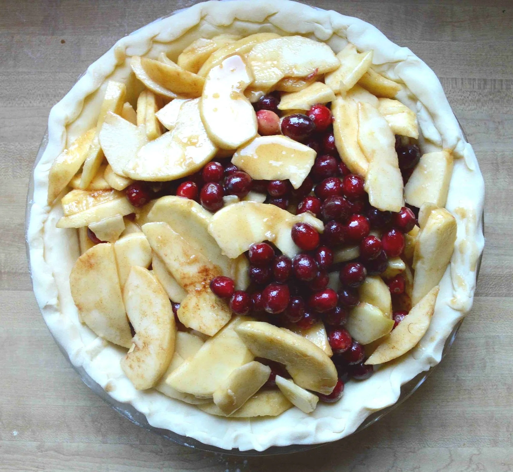 If you like your apple pie on the less sweet side, this pie is for you. The cranberries really balance out the apples and the sweet, buttery cinnamon crumb topping.